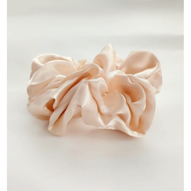 Saténová gumička Mini Scrunchies vo svetlo béžovej farbe zo 100 % polyester saténu , ktorá chráni vlasy pred lámavosťou a nežiaducimi odtlačkami.